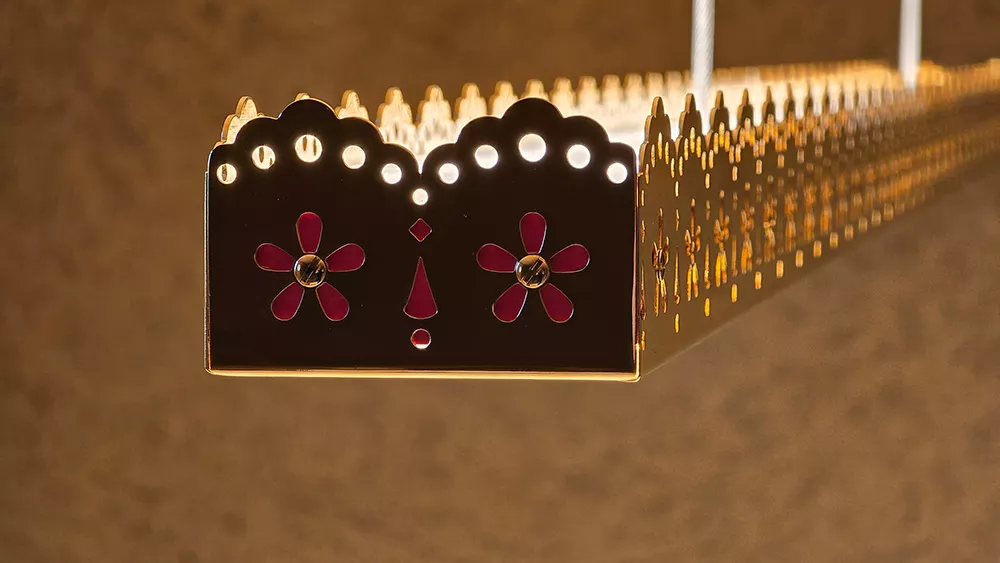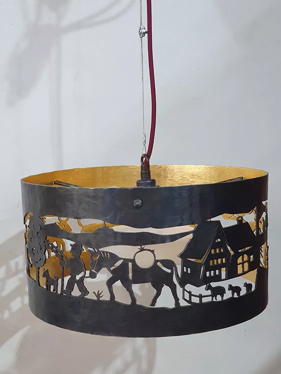 Jede Lampe von Kunstschmiede Appenzell ist ein handgefertigtes Unikat – gefertigt aus edlem Schwarzstahl, fein geölt und im Innern goldig lackiert.